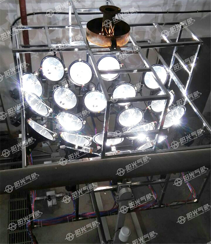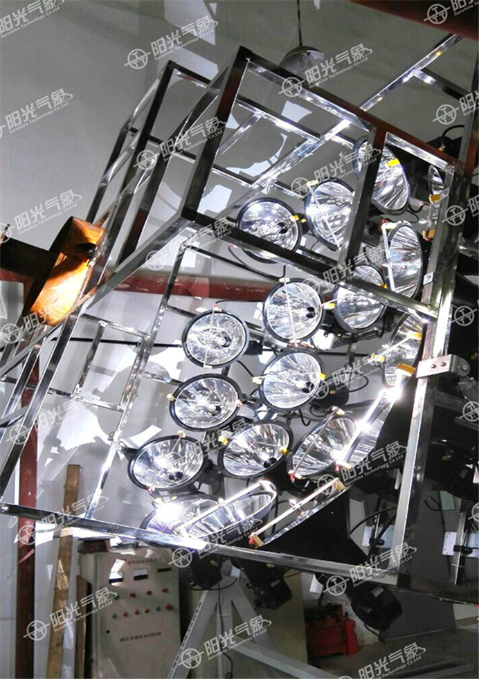 該模擬器是國內首創(chuàng)的大型多點聚光式太陽模擬器,采用環(huán)形聚光模式模擬真實太陽的發(fā)光特性,可以實現對太陽照射模擬的高溫試驗,聚光溫度可達到1000℃以上。該模擬器具有高輻照度、大尺寸光斑、均勻性和穩(wěn)定性良好、長時間持續(xù)工作等優(yōu)勢,各項技術指標均處于國內領先水平。聚光式太陽模擬器的投入使用,有效提高了南京工業(yè)大學教學試驗能力,對我國模擬測量工作具有重要意義。