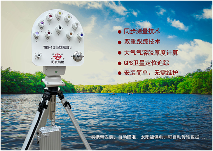 TBS-4全自動太陽光度計為高精度野外太陽和天空輻射測量儀器,不但可以測量十個波段的太陽直接輻射,還可以測量太陽的總輻射、散射輻射、日照時數(shù)、太陽高度角、大氣氣溶膠厚度等諸多要素,并可以通過GPS實時定位追蹤。還具有易攜帶安裝,自動瞄準(zhǔn),太陽能供電,無線組網(wǎng)云端監(jiān)測,數(shù)據(jù)自動傳輸?shù)忍攸c。它將機(jī)器人控制技術(shù)與輻射測量技術(shù)完美結(jié)合,采用了太陽光追蹤+旋轉(zhuǎn)角度測量+輻射光譜測量+GPS 衛(wèi)星定位追蹤等綜合應(yīng)用技術(shù)。它是當(dāng)今應(yīng)用最廣、功能最全、權(quán)威性最高的太陽光度計儀器。主要用于測量太陽和天空在可見光和近紅外的不同波段、不同方向、不同時間的輻射亮度,來推算大氣氣溶膠、水汽、臭氧等成分的特性。
