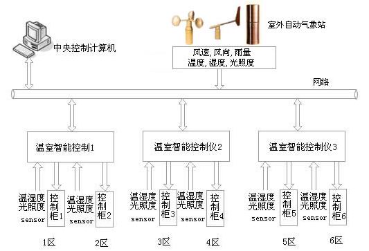 本系統(tǒng)可根據(jù)室內(nèi)外溫度、濕度、光照度、二氧化碳、氣象參數(shù)的變化,按照預(yù)先設(shè)定的條件實(shí)現(xiàn)對風(fēng)機(jī)、水泵、拉幕機(jī)、卷膜器、開窗機(jī)、加熱、灌溉等設(shè)備的全自動控制,并具有對數(shù)據(jù)的存儲打印、功能、實(shí)現(xiàn)科學(xué)化的管理。