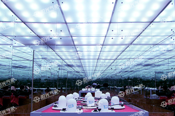 人工天穹,利用穩(wěn)定的LED燈矩陣組,分組控制,達到亮度一致均勻,通過高透光率的擴散膜進一步均勻擴散。達到平面鏡做的四個內(nèi)立面后經(jīng)過多次反射,使天空亮度滿足國際照明學會標準全云天空亮度分布或均勻亮度分布。