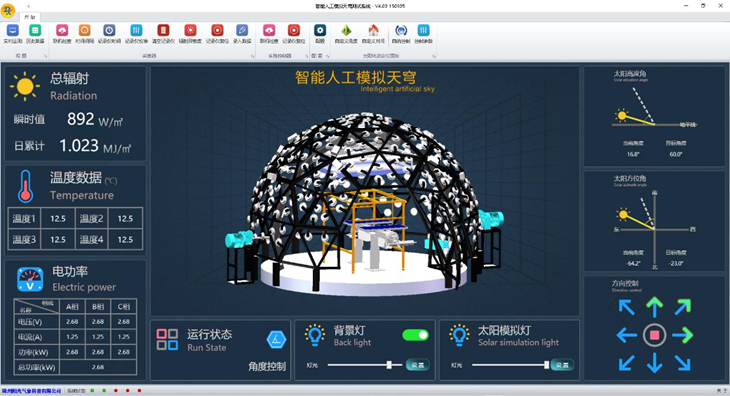 近年來隨著太陽能應用的不斷發(fā)展,關(guān)于太陽能利用、轉(zhuǎn)換的相關(guān)產(chǎn)品,尤其是太陽能電池板的使用量也逐漸增加。過去,這些產(chǎn)品都是在自然環(huán)境下進行測試,受制于氣候條件,因此存在測試周期長、數(shù)據(jù)的可重現(xiàn)性差等不足。JZYG-TGS1智能人工模擬天穹是模擬天空及太陽運行的一種光源設備,可以在高精度擬合太陽光譜分布的前提下,實現(xiàn)不同的太陽輻照度、光照角度等條件,滿足測試研究對太陽輻照的特殊需求。使用智能人工模擬天穹能夠克服氣候多變性所造成的不便,可以全年24小時在室內(nèi)對太陽能產(chǎn)品進行測試。