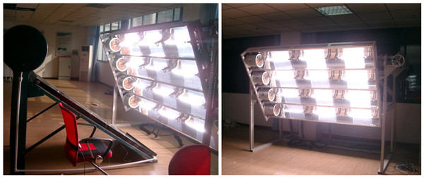 (4)裝有四組大功率風(fēng)機(jī),對(duì)發(fā)射光源環(huán)境進(jìn)行強(qiáng)制冷卻,可對(duì)太陽(yáng)能熱水器、集熱器、電池板、太陽(yáng)能發(fā)電站等產(chǎn)品進(jìn)行直接照射。