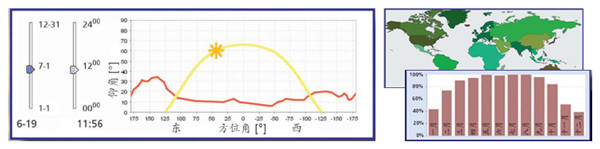 (2)太陽(yáng)能系統(tǒng)模擬計(jì)算統(tǒng)計(jì)軟件:可以根據(jù)被測(cè)產(chǎn)品的數(shù)據(jù), 模擬其產(chǎn)品在世界各地的應(yīng)用效果分析圖表,并建立產(chǎn)品檢測(cè)元件庫(kù)。