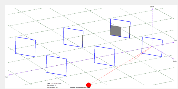 TT追日跟蹤器設計高度角為20°~80°,因此在設計跟蹤器排布時需考慮到太陽高度角在大于20°時,跟蹤器之間不會互相遮擋。