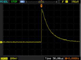 3) 組件無光照,用沖擊電壓發(fā)生器施加脈沖電壓,波形如圖五所示。脈 沖波形用示波器檢測,每次試驗時應(yīng)檢驗上升時間和脈沖持續(xù)時間;
