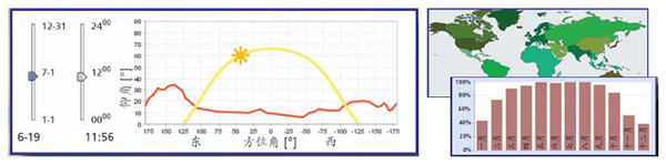 可以針對不同的建筑、不同時間段進行模擬計算軟件中采用動態(tài)建筑模擬,考慮到建筑所有相關的參數(shù),包括幾何結(jié)構(gòu)、方位和熱質(zhì),提供詳細的隔熱數(shù)據(jù);同時軟件在計算中,由定位坐標和地平線共同確定太陽的位置,每四分鐘更新一次,因此甚至可以專門針對某小時、某天或者某段時期內(nèi)的太陽能系統(tǒng)進行模擬計算;