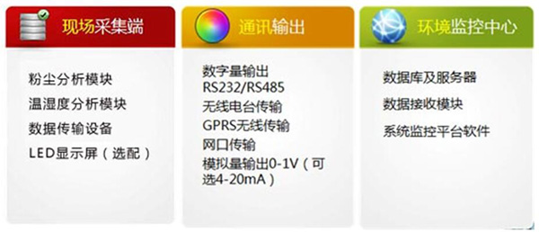 功能特點(diǎn):監(jiān)測(cè)粉塵顆粒物濃度PM、溫度、濕度三種參數(shù)