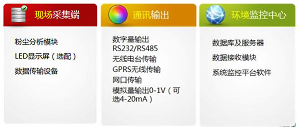 功能特點(diǎn):固定安裝,全天候連續(xù)監(jiān)測(cè)多個(gè)粒徑顆粒物濃度