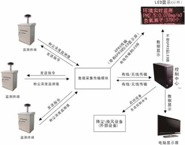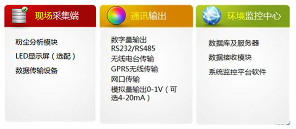 本系統(tǒng)以有線232傳輸方式為紐帶,組建現(xiàn)場端到監(jiān)控平臺的一個城域網(wǎng),實(shí)現(xiàn)各監(jiān)控點(diǎn)與監(jiān)控平臺的連接?,F(xiàn)場端設(shè)備按照國家相關(guān)技術(shù)協(xié)議將實(shí)時粉塵監(jiān)測濃度指數(shù)傳輸?shù)奖O(jiān)控平臺,監(jiān)控平臺對監(jiān)控數(shù)據(jù)進(jìn)行存儲、統(tǒng)計、分析、處理,為重點(diǎn)區(qū)域環(huán)境管理提供數(shù)據(jù)支持和決策依據(jù)。