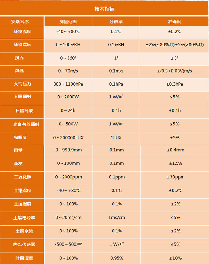 TRM-ZS3農(nóng)田小氣候觀測站滿足GB/T 20524-2006國家標(biāo)準(zhǔn)要求,可為病蟲害防治、作物生產(chǎn)和商業(yè)及科研分析提供強(qiáng)有力的信息支持。該系統(tǒng)具有性能穩(wěn)定,檢測精度高,無人職守,抗干擾能力強(qiáng),軟件功能豐富等方面特點。