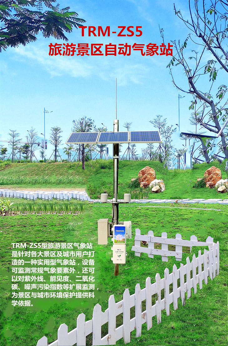 TRM—ZS5型旅游景區(qū)自動(dòng)氣象站是針對(duì)各大景區(qū)及城市用戶的一種實(shí)用型自動(dòng)氣象站,它除可測(cè)量常規(guī)氣象要素如風(fēng)向、風(fēng)速、溫度、濕度、氣壓、雨量外,還可對(duì)紫外線、特零地溫(即零厘米土面、水泥面、瀝青面、草坪)的觀測(cè),為景區(qū)及城市環(huán)境保護(hù)提供科學(xué)依據(jù)。