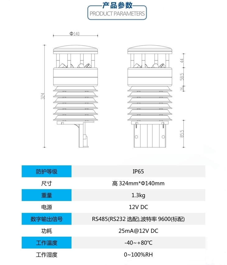 PC-8D型氣象五參數(shù)環(huán)境監(jiān)測(cè)儀是我公司自主研制的一種測(cè)量多要素氣象要素的傳感器,可同時(shí)測(cè)量大氣溫度、大氣濕度、風(fēng)速、風(fēng)向、氣壓等五種主要?dú)庀笠亍F涮攸c(diǎn)是精度高,響應(yīng)時(shí)間快,串口輸出,方便用戶直接通過(guò)PC或外接儀器進(jìn)行測(cè)量。