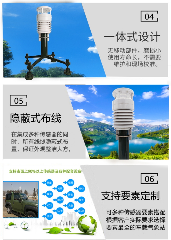 PC-4A型車載式環(huán)境監(jiān)測儀是在結構設計和觀測要素方面專門為移動應急環(huán)境而設計的一款綜合觀測自動氣象站。它可以監(jiān)測風向風速、空氣溫濕度、降雨、氣壓、噪聲、太陽輻射等氣象要素,也可以測量PM2.5、PM10、CO、NO2、SO2、O3等氣體和顆粒物指標。