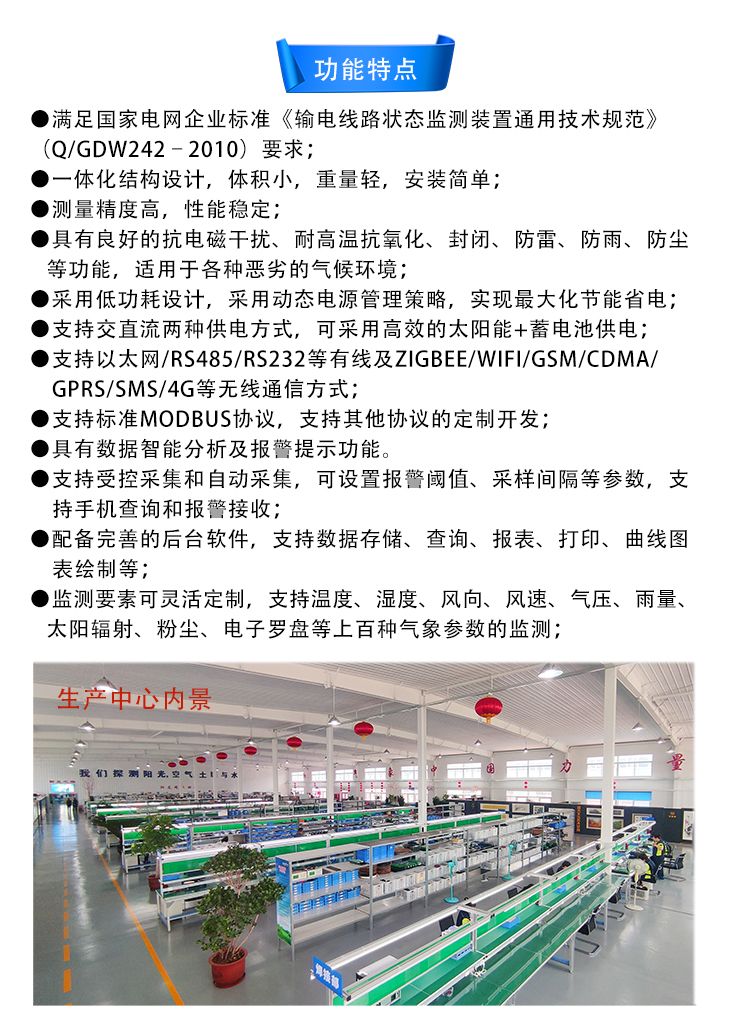高壓輸電線路微氣象在線監(jiān)測系統(tǒng)是為滿足輸電線路局部氣象環(huán)境監(jiān)測需要而自主研發(fā)的、擁有全部知識產(chǎn)權(quán)的多要素微氣象監(jiān)測預(yù)警系統(tǒng),輸電線路微氣象在線監(jiān)測系統(tǒng)集數(shù)據(jù)采集、存儲、傳輸和管理于一體,可實時采集環(huán)境溫度、濕度、風(fēng)速、風(fēng)向、氣壓、雨量、太陽輻射等氣象參數(shù),并通過RS485/WiFi/GPRS或4G網(wǎng)絡(luò)將監(jiān)測信息發(fā)送至遠(yuǎn)程監(jiān)控中心,或傳輸給視頻監(jiān)控設(shè)備,實現(xiàn)二次集成。當(dāng)出現(xiàn)異常情況時,系統(tǒng)會以多種方式發(fā)出預(yù)報警信息,提示管理人員對報警點予以重視或采取必要措施。