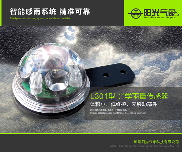 L301型光學(xué)雨量傳感器是錦州陽光研發(fā)的新型光學(xué)雨量傳感器,使用光束的紅外光檢測觸及外表面的雨滴,它比一個典型的翻斗式雨量計要靈敏100倍,并單個計數(shù)雨滴,發(fā)送脈沖信號。