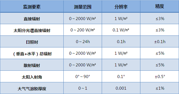 3、可推算出大氣氣溶膠厚度,大氣氣溶膠指的是膠體分散體系的一種,具體是指固體小顆?;蛞后w小質(zhì)點在氣體介質(zhì)中懸浮、分散所形成的氣體分散體系。系統(tǒng)可通過天空掃描數(shù)據(jù)及太陽輻射數(shù)據(jù)來計算大氣透光率或散射光的強度,并與標準的光度進行比較,再反演氣溶膠光學和其他特性,如粒度譜、相函數(shù)等。從而推算出大氣汽溶膠厚度,水汽,臭氧等成分的特性;