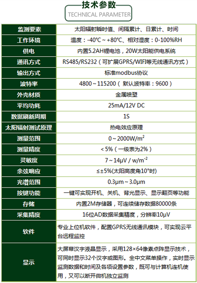 TBQ-2W太陽(yáng)輻射儀是陽(yáng)光氣象公司研發(fā)生產(chǎn)的手持輻射儀,它具有體積小、重量輕、精度高、性能穩(wěn)定等特點(diǎn),這款產(chǎn)品集監(jiān)測(cè)、顯示、存儲(chǔ)、通訊等功能于一體,是一款能手持監(jiān)測(cè)的太陽(yáng)輻射儀。TBQ-2W的研發(fā)解決了常規(guī)手持輻射儀測(cè)量精度低,而高精度輻射產(chǎn)品又系統(tǒng)龐大的問(wèn)題。另外本產(chǎn)品采用了防腐、防爆、防水、防震、防塵等高防護(hù)級(jí)別的設(shè)計(jì)理念,可滿(mǎn)足各種特殊環(huán)境的使用需求,是軍事、航海、科研等領(lǐng)域產(chǎn)品。