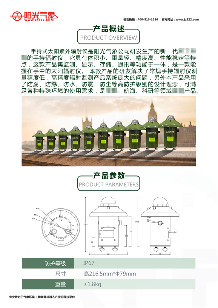 TBQ-ZW-SC手持式紫外輻射儀是陽光氣象開發(fā)生產(chǎn)的新一代手持輻射儀。它具有體積小、重量輕、精度高、穩(wěn)定性強等特點。這款產(chǎn)品集監(jiān)測、顯示、存儲、通訊等功能于一體,解決了常規(guī)手持輻射儀精度低,高精度輻射監(jiān)測產(chǎn)品系統(tǒng)龐大的問題。