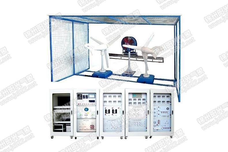 本系統(tǒng)由模擬風(fēng)系統(tǒng)、模擬風(fēng)控制系統(tǒng)、離網(wǎng)逆變系統(tǒng)、充電控制系統(tǒng)、負(fù)載系統(tǒng)和風(fēng)能控制系統(tǒng)組成;其中有2個(gè)被控對象和5個(gè)控制柜組成。模擬風(fēng)力發(fā)電系統(tǒng)用4000w的鼓風(fēng)機(jī)模擬自然風(fēng),其風(fēng)力大小可以通過變頻器控制鼓風(fēng)機(jī)轉(zhuǎn)速來完成,PLC采用PWM模式對直流減速電機(jī)進(jìn)行調(diào)速控制;鼓風(fēng)機(jī)在交流電動機(jī)的驅(qū)動下左右移動,左右旋轉(zhuǎn)以改變風(fēng)吹方向,以模擬不同風(fēng)速風(fēng)向下的發(fā)電效果風(fēng)力風(fēng)向檢測裝置檢測風(fēng)力大小及方向;發(fā)電風(fēng)車實(shí)時(shí)跟蹤發(fā)電。發(fā)電風(fēng)車還配有葉片轉(zhuǎn)速檢測裝置,在計(jì)算機(jī)上實(shí)時(shí)顯示其運(yùn)轉(zhuǎn)狀況及相應(yīng)參數(shù)。