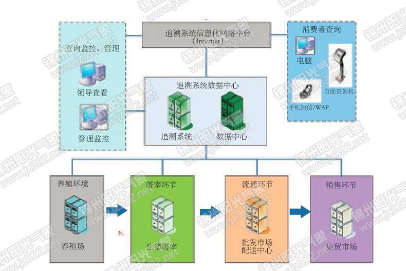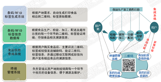 食品追溯平臺是一個基于B/S 架構(gòu)的軟件平臺,系統(tǒng)將每個環(huán)節(jié)的食品關(guān)聯(lián)信息自動記錄到數(shù)據(jù)庫,用戶可以通過互聯(lián)網(wǎng)訪問系統(tǒng)獲取相關(guān)的食品追溯信息。食品安全溯源系統(tǒng)主要包括三個子系統(tǒng)、一個數(shù)據(jù)庫。