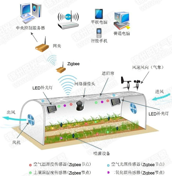 YG-SAC-SYS-01智慧農(nóng)業(yè)實訓(xùn)系統(tǒng)以農(nóng)業(yè)大棚模型為載體,能夠?qū)τ绊戅r(nóng)作物生長的環(huán)境傳感數(shù)據(jù)實時監(jiān)測,同時根據(jù)環(huán)境參數(shù)閾值設(shè)置實現(xiàn)對現(xiàn)場電氣設(shè)備的自動化控制,如風(fēng)扇、加濕器、除濕器、空調(diào)、照明設(shè)備、灌溉設(shè)備等,并支持遠(yuǎn)程控制。常用環(huán)境監(jiān)測傳感器包括空氣溫濕度、土壤溫濕度、環(huán)境光照等傳感器。亦可支持無縫擴展無線傳感器節(jié)點,如大氣壓力、水位監(jiān)測、CO2、煙霧、紅外人體感應(yīng)等傳感器。根據(jù)常見農(nóng)作物種植經(jīng)驗對系統(tǒng)關(guān)鍵值的設(shè)定進(jìn)行判別,當(dāng)某種數(shù)據(jù)偏離設(shè)定值時,大棚會自動做出反應(yīng)(如溫度偏低時則打開供暖設(shè)施;溫度偏高時則開門通風(fēng);水量不足時則自動打開噴淋裝置等)。通過更加精細(xì)和動態(tài)的監(jiān)控方式對農(nóng)作物進(jìn)行管理,更好地感知農(nóng)作物的生長環(huán)境,通過智能控制提高資源利用率和生產(chǎn)力水平。
