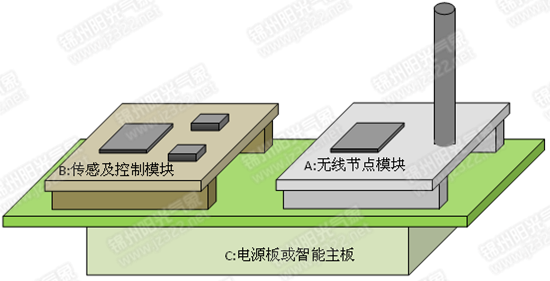 無(wú)線傳感網(wǎng)節(jié)點(diǎn)模塊采用模塊化設(shè)計(jì),各個(gè)模塊可自由組合形成針對(duì)不同應(yīng)用的無(wú)線節(jié)點(diǎn)。系統(tǒng)包含多個(gè)無(wú)線傳感網(wǎng)節(jié)點(diǎn)模塊及一個(gè)無(wú)線網(wǎng)絡(luò)協(xié)調(diào)器模塊。