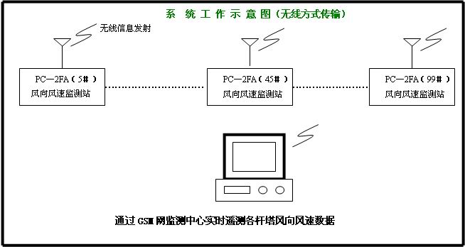 1.PC-2FZ自動(dòng)測(cè)風(fēng)站可應(yīng)用在邊遠(yuǎn)地區(qū)、高山、海島等條件艱苦的地方。采用太陽(yáng)能供電方式,根據(jù)用戶需求,可通過(guò)Modem電話撥號(hào)、GSM數(shù)據(jù)傳輸、無(wú)線擴(kuò)頻等通信方式,形成一個(gè)綜合氣象信息自動(dòng)收集網(wǎng)絡(luò)。