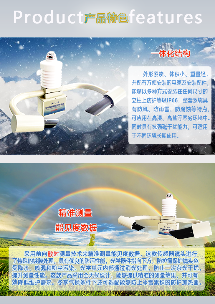 NJD-6型天氣現(xiàn)象能見(jiàn)度傳感器是錦州陽(yáng)光自主研發(fā)的國(guó)產(chǎn)化高精度天氣現(xiàn)象探測(cè)設(shè)備,可以識(shí)別各種雨及雪的狀態(tài),超越了傳統(tǒng)的雨量?jī)x器,滿(mǎn)足對(duì)雨雪的精密觀測(cè),同時(shí)又可以實(shí)時(shí)監(jiān)測(cè)能見(jiàn)度的數(shù)據(jù)。